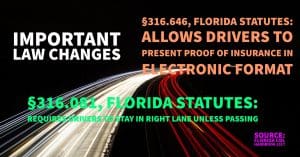 §316.646, Florida Statutes: Allows drivers to present proof of insurance in an electronic format.
